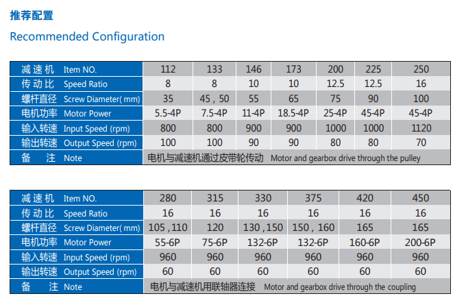 Select the gear reducer specifications (Table 1): Choose the model based on the input power and output speed provided by the user.